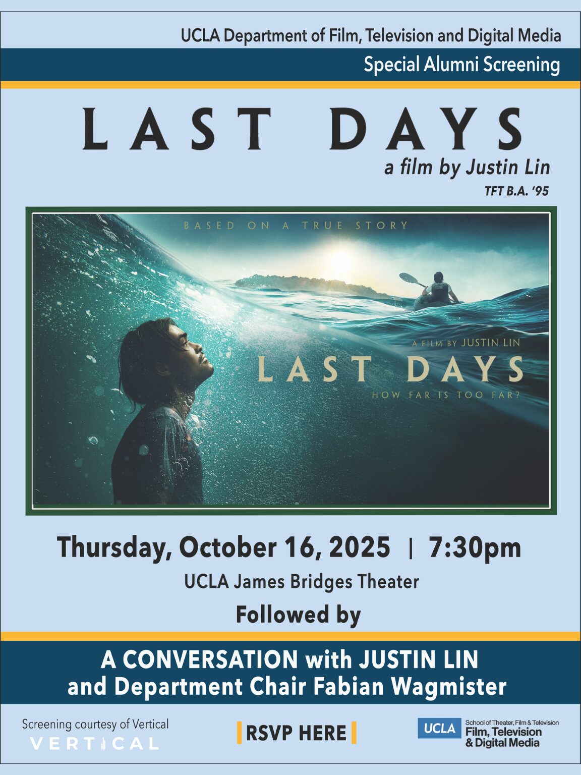 Screening of Last Days followed by a conversation with JUSTIN LIN (TFT B.A. ’95) and FTVDM Chair Fabian Wagmister.